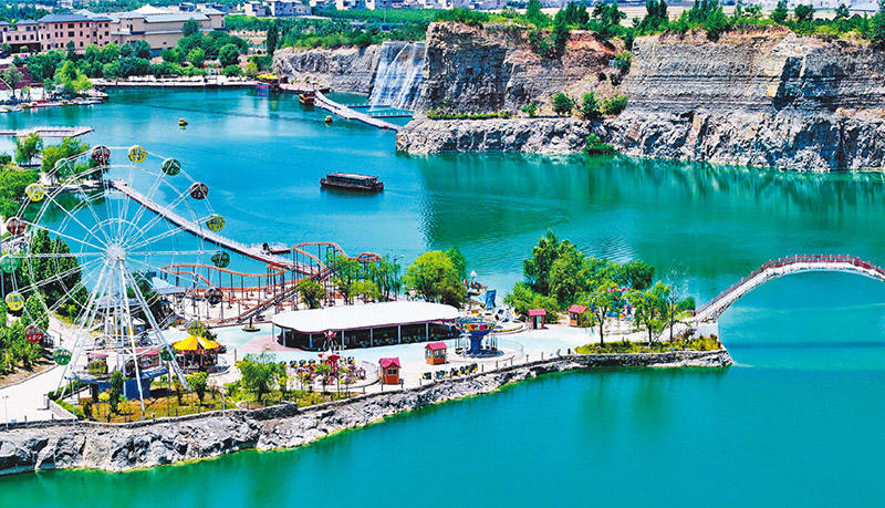 “十四五”规划《纲要》提出,科学规划布局城市绿环绿廊绿楔绿道,推进生态修复和功能完善工程。图为2025年6月4日拍摄的山东省菏泽市巨野县核桃园镇青龙山旅游度假区。该度假区是当地对关停矿山、废弃矿坑进行综合治理和生态修复后打造而成的。新华社记者郭绪雷/摄