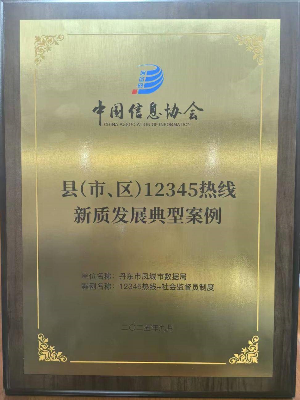 日前,2025全国县(市、区)12345热线发展大会在山东烟台召开。凤城市12345热线工作案例《12345热线+社会监督员制度》荣获机制创新奖,并被收录2025全国县(市、区)12345热线新质发展典型案例,面向全国推广,标志着凤城市12345政务服务便民热线工作创新实践获国家级权威认可。