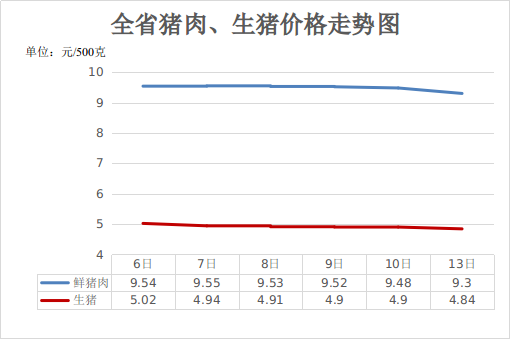 一、猪肉价格小幅下降。清明假期对终端消费提振作用有限,节后消费惯性回落,餐饮、家庭消费无明显增量,导致猪肉走货迟缓,生猪、猪肉价格继续下降。4月13日,生猪(每500克,下同)平均价格4.84元,周环比下降3.59%,同比下降34.68%;猪肉(去骨后腿肉)9.3元,周环比下降2.52%,同比下降20.51%。