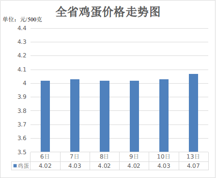 四、粮油价格保持稳定。受稳定的供需关系影响,粮油价格总体保持平稳。4月13日,大米、面粉、豆油(桶装5升)全省平均价格分别为2.8元、2.76元、65.06元,周环比分别持平、持平、0.09%,同比涨跌0.72%、-2.13%、-1.78%。