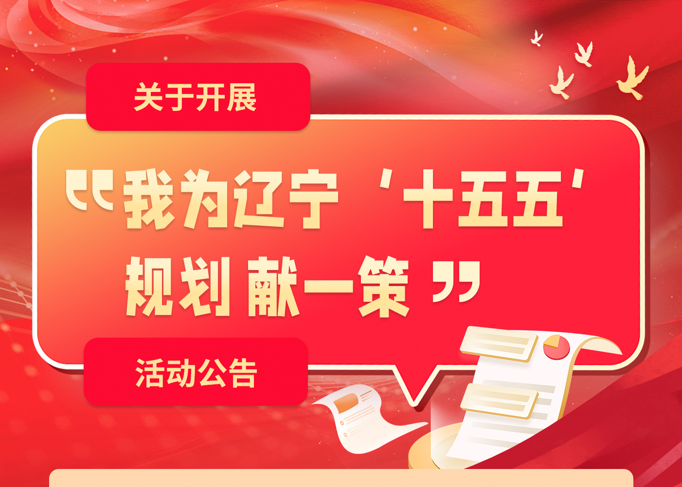 为深入贯彻落实习近平总书记关于“十五五”规划编制工作的重要讲话和重要指示精神,全面落实省委、省政府工作部署,将加强顶层设计与坚持问计于民相结合,充分吸收社会期盼、群众智慧、专家意见和基层经验,确保规划编制更加科学民主、符合实际,现开展“我为辽宁‘十五五’规划献一策”活动,诚邀关心辽宁振兴发展的各界人士踊跃建言献策。